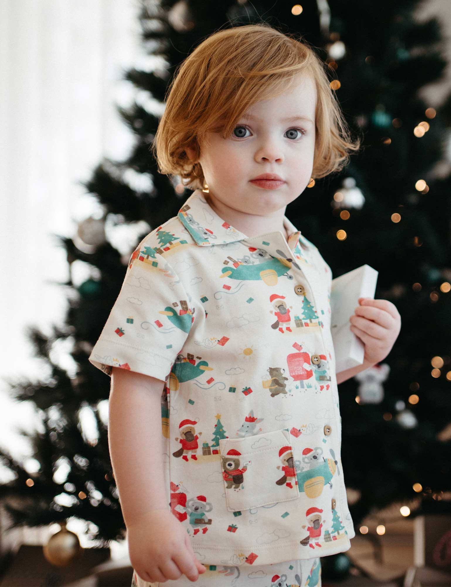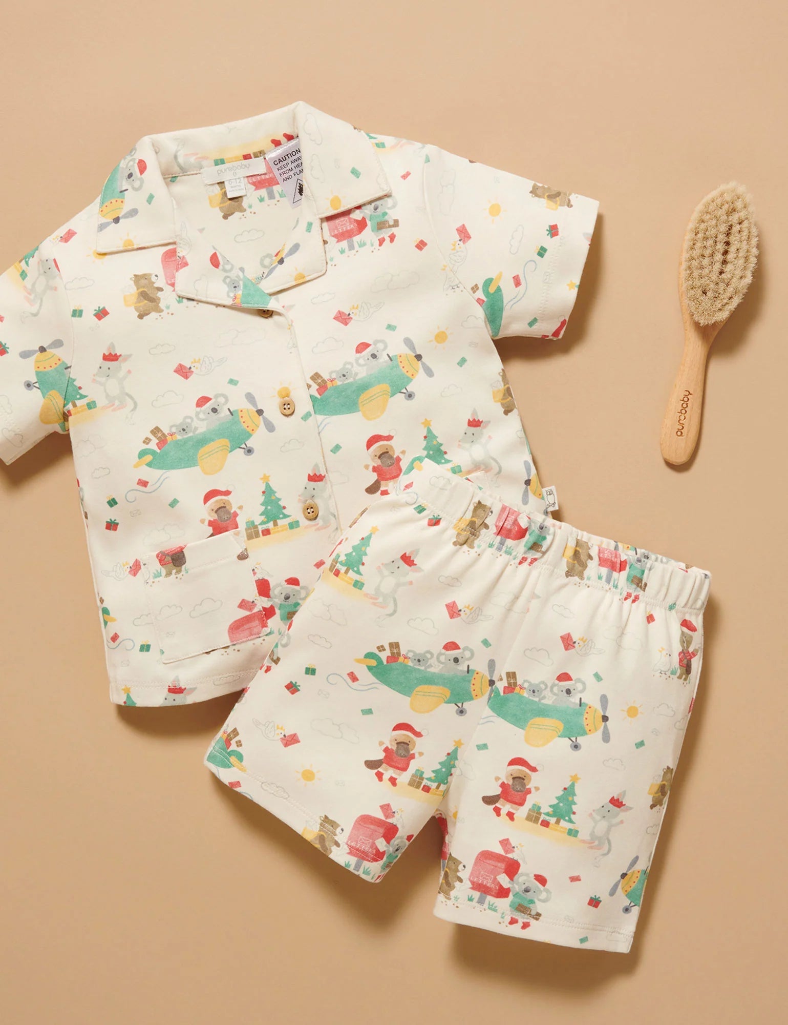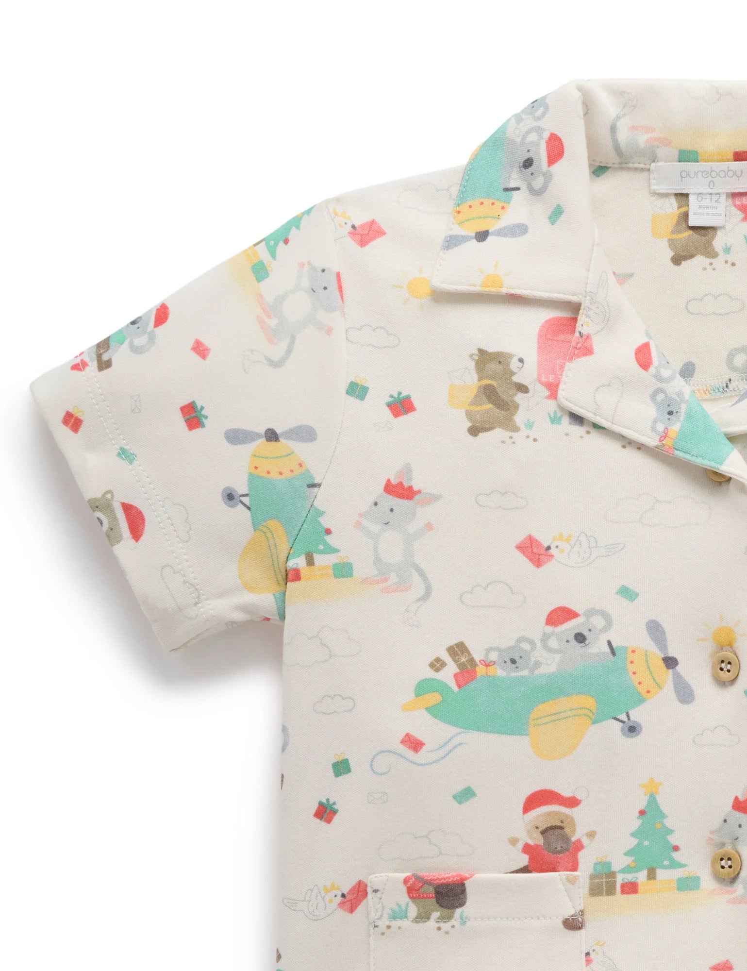 Purebaby's Button Up PJ Set makes dreamtime fun! Featuring a two piece top and short set in a sweet festive print. Made from 100% Organic Cotton for a soft and breathable summer sleepwear option.
