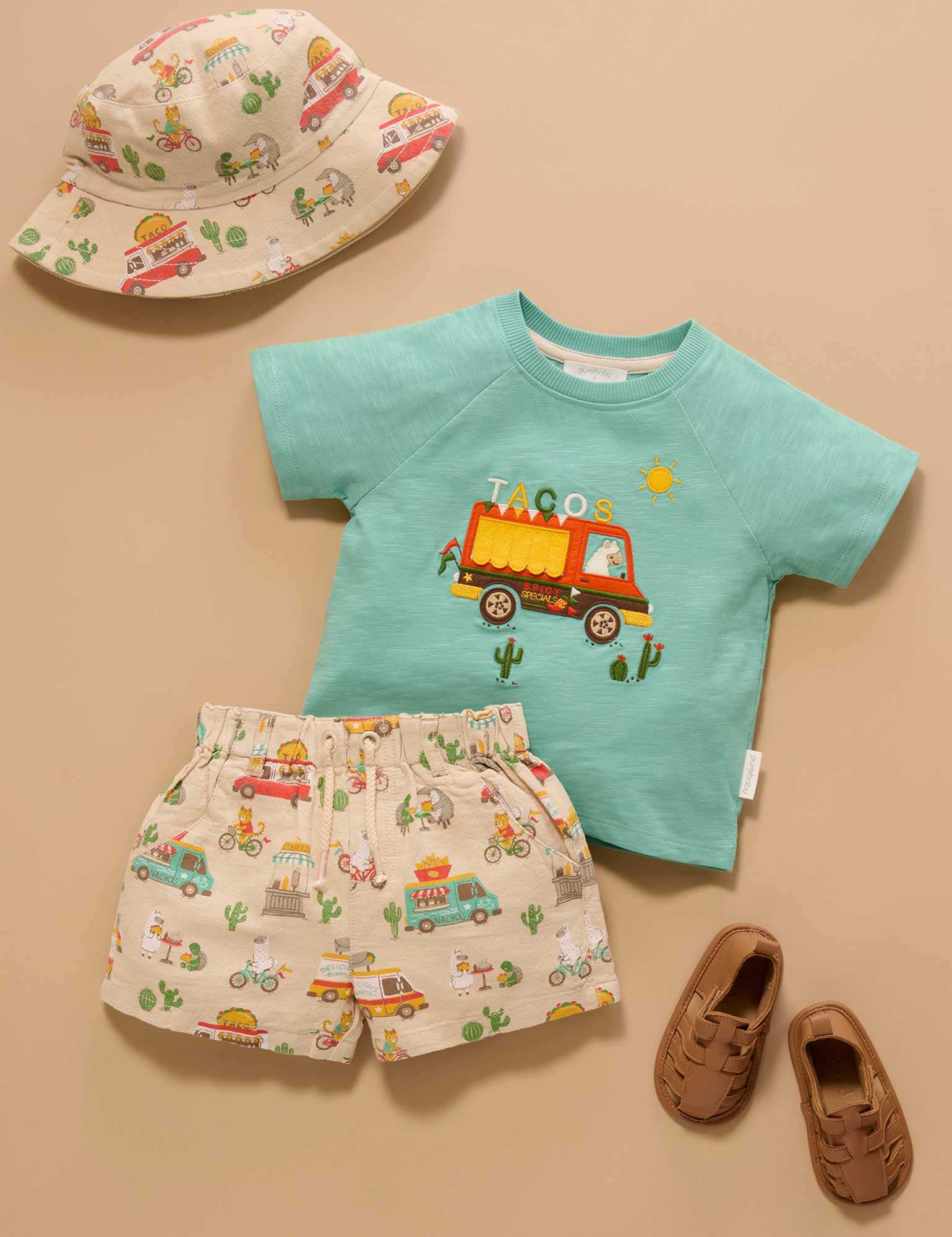 Purebaby's Taco Truck Pull On Shorts are a comfy, easy care basic that are great for active little people. Featuring a fun, all over taco truck print! Made from the softest 100% Organic Cotton. Pair with Purebaby's Taco Truck Relaxed Tee  for a cute outfit.