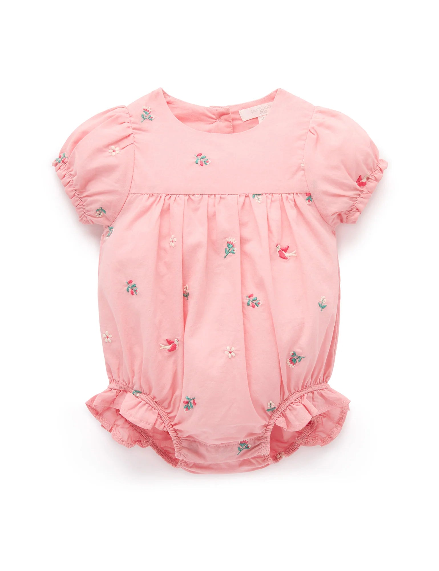 Purebaby's Swallow Embroidered Bodysuit is pretty all-in-one style for those hot summer days! Featuring ruffle details on the legs, elasticised cuffs and a sweet all over swallow and floral embroidery. Made from the softest 100% Organic Cotton cambric for a lightweight and breathable style.
