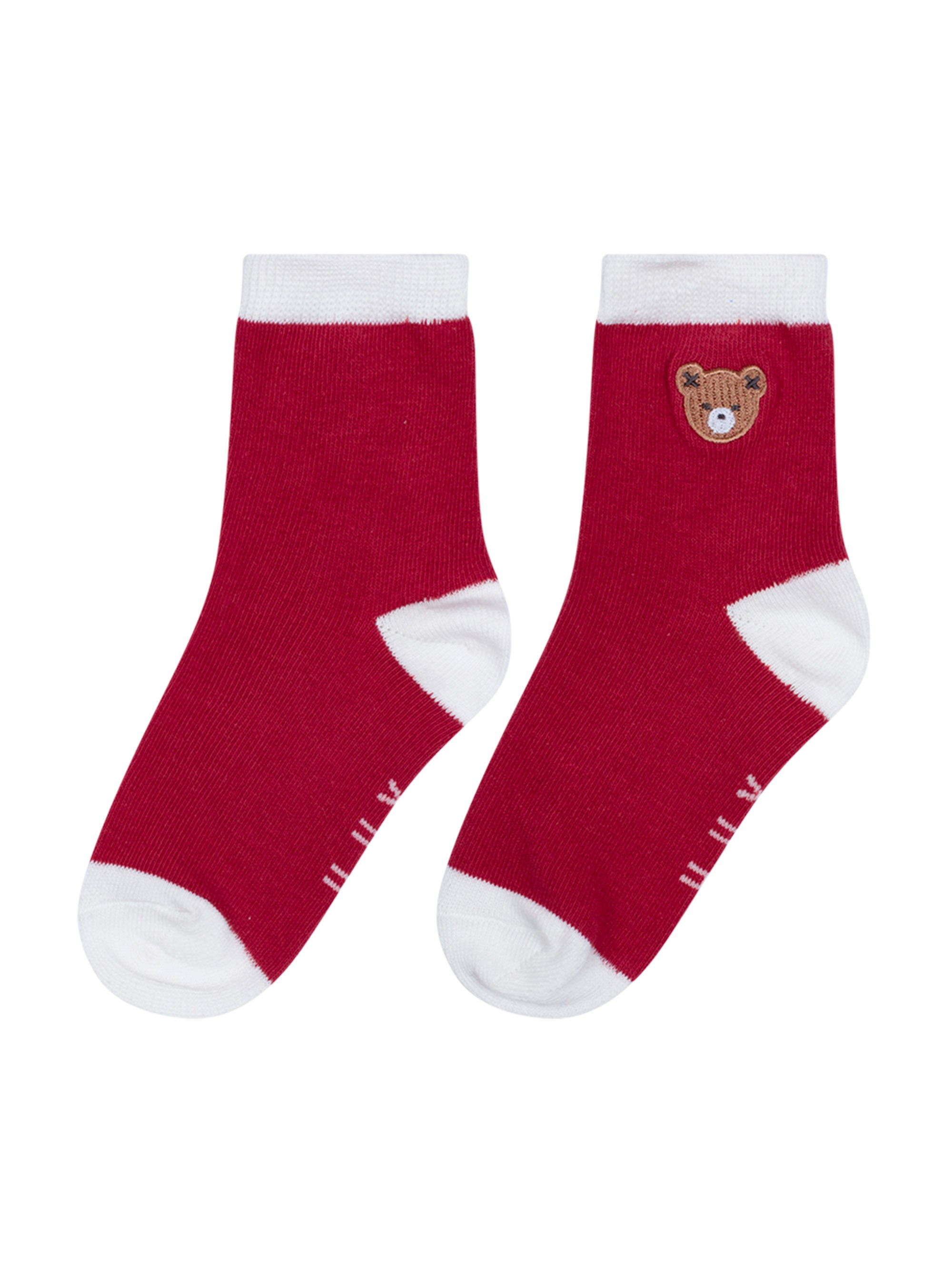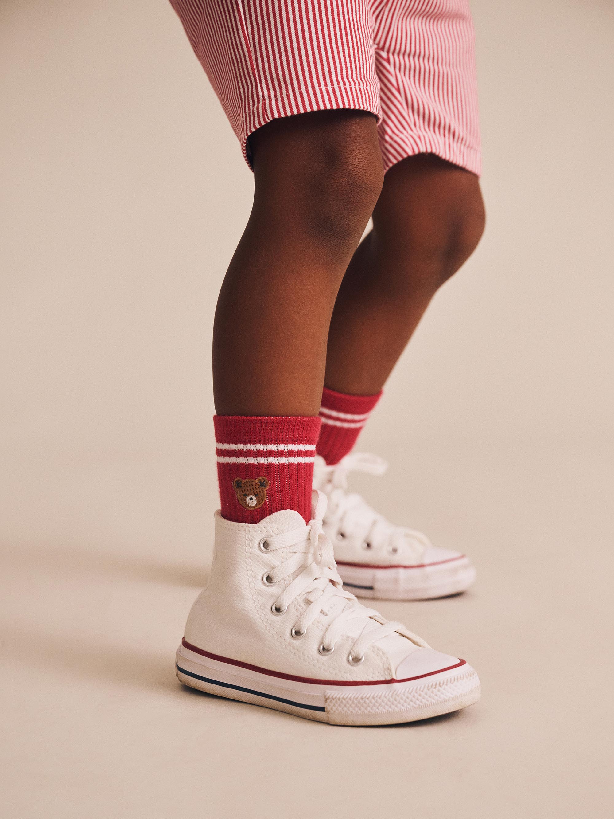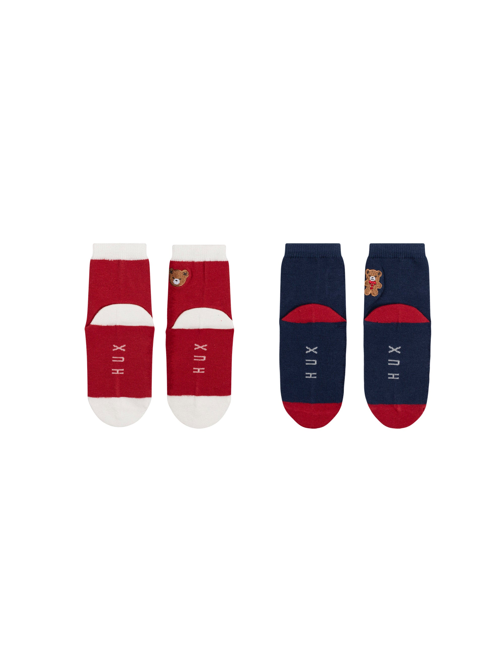 Two pairs of the softest, squishiest ankle socks you’ll ever meet. Made with a breathable blend of fibres to cushion busy feet. These fun festive socks feature custom huxbear gingerbread embroideries. Made with non-slip grippies on baby sizes 6-12 months.