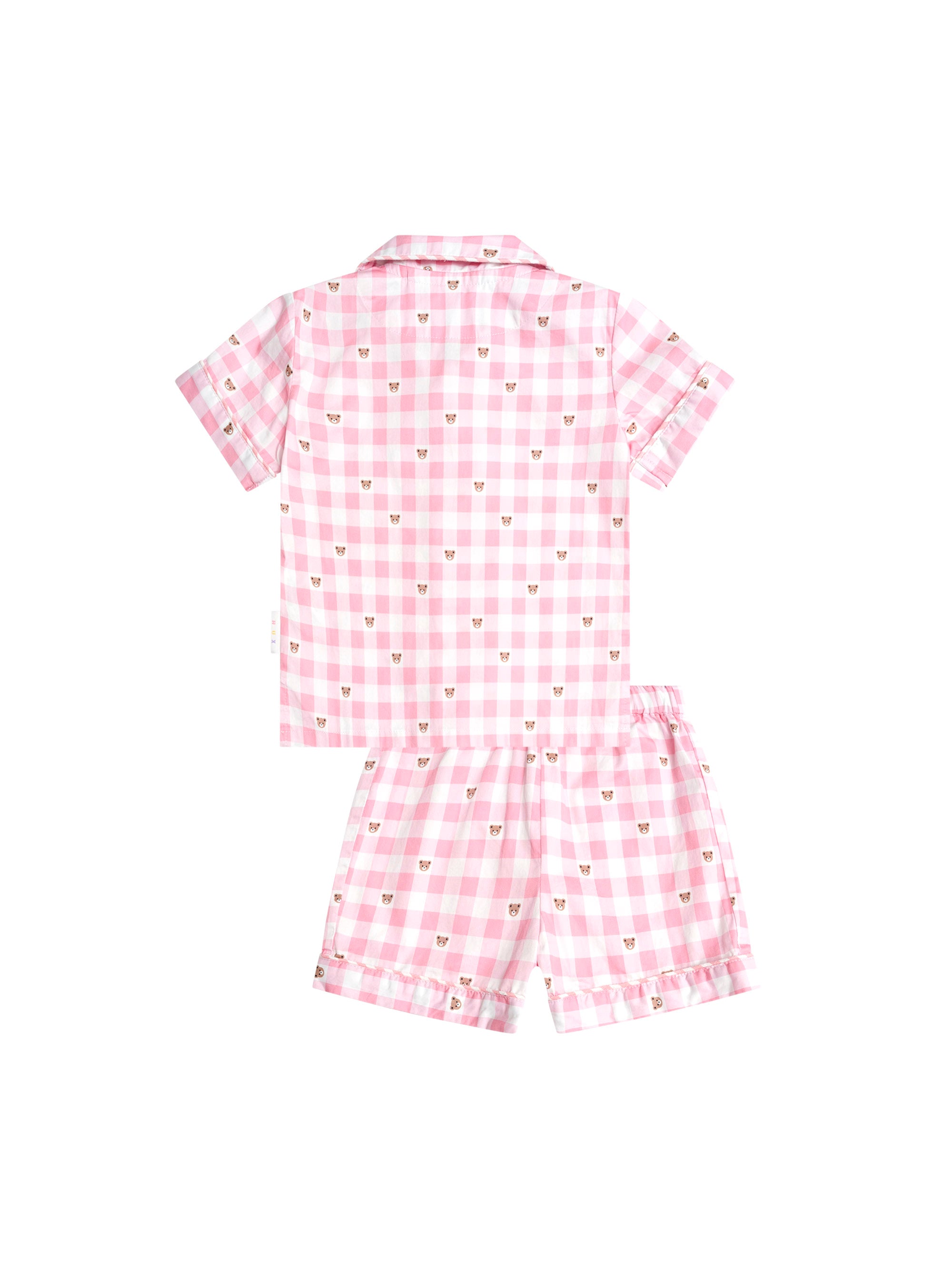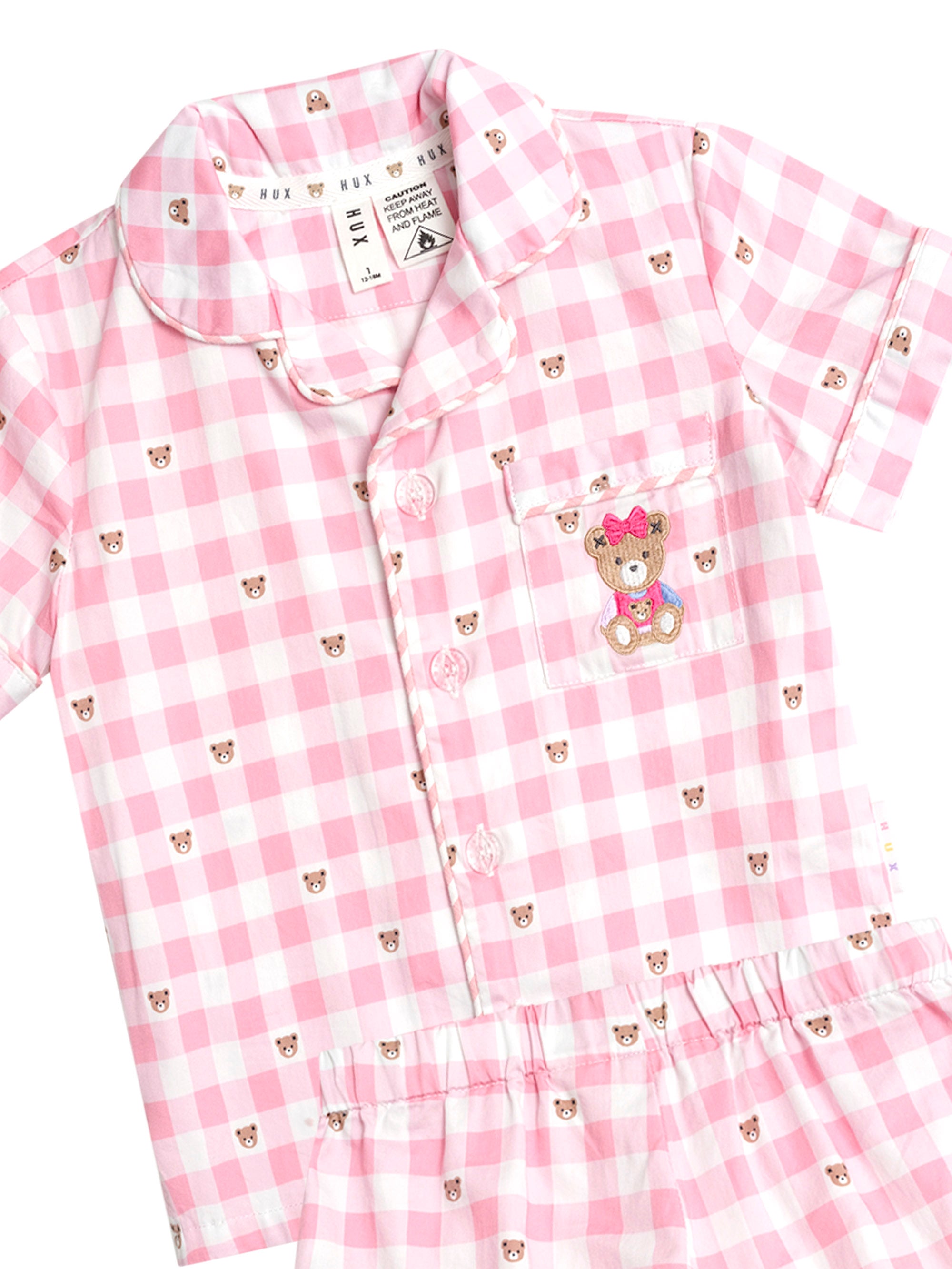 Made from soft cotton sateen, these pyjamas from Huxbaby feature an all over custom strawberry check print, a soft and stretchy waistband to keep little tummies comfy and a special front pocket with Huxbear embroidery.
