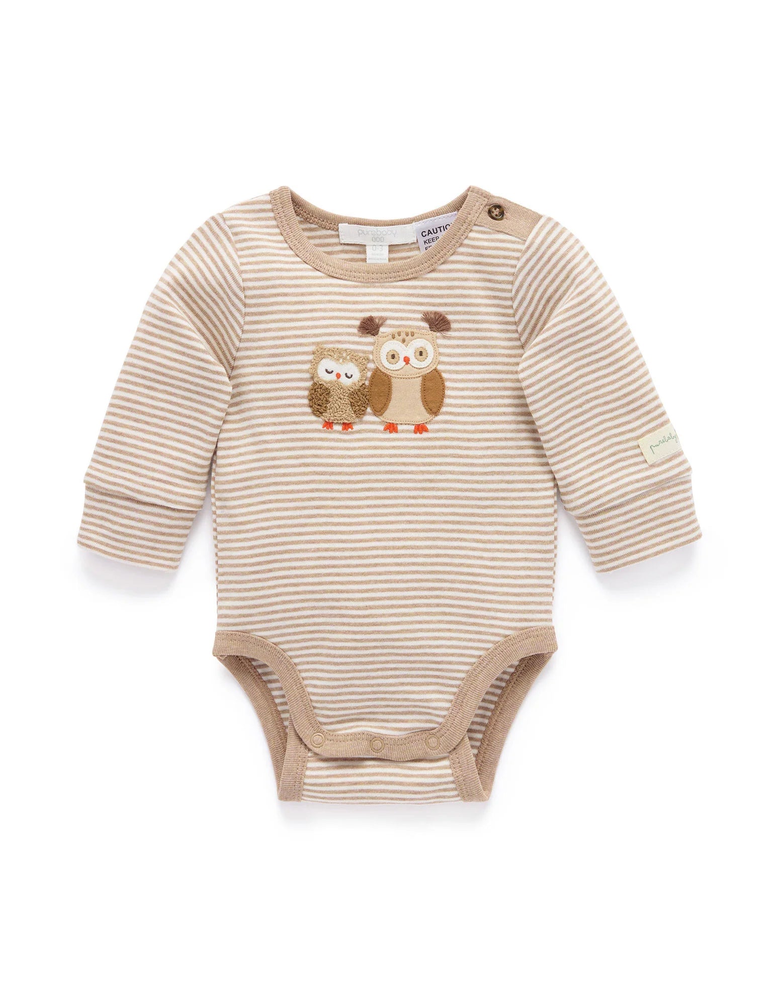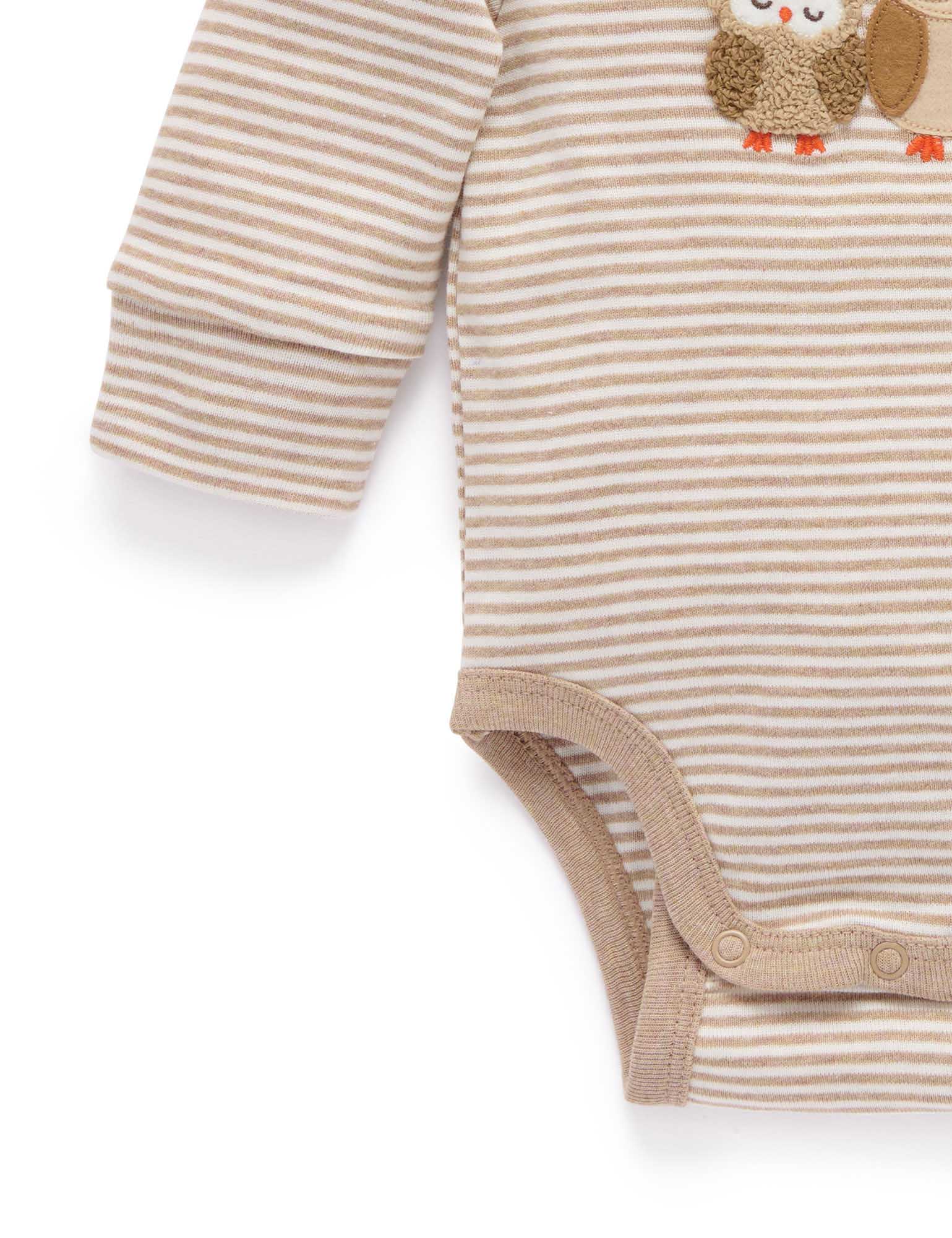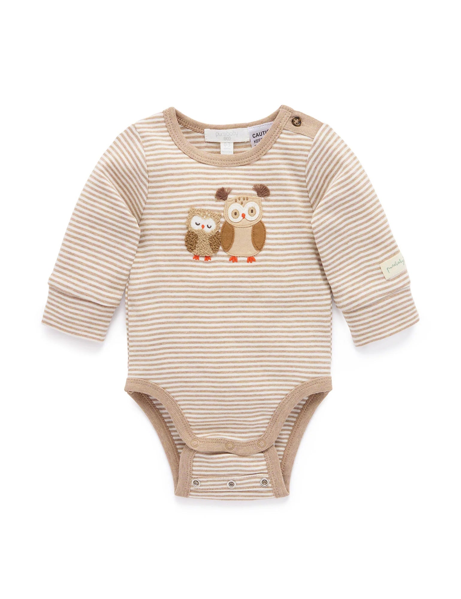 Purebaby's Applique Bodysuit is the sweetest layering piece for all seasons. Bodysuits are essential in your baby's wardrobe and an ideal layering piece all year round. Featuring a fun, fairytale forest themed applique at the chest! Designed with two rows of snap clips at the leg to grow with your little one, and allow for easy dressing. Made from our 100% Organic Cotton for a soft, gentle touch against their skin. Style with the Purebaby Thick Leggings and Cable Padded Jacket for a cosy outfit.