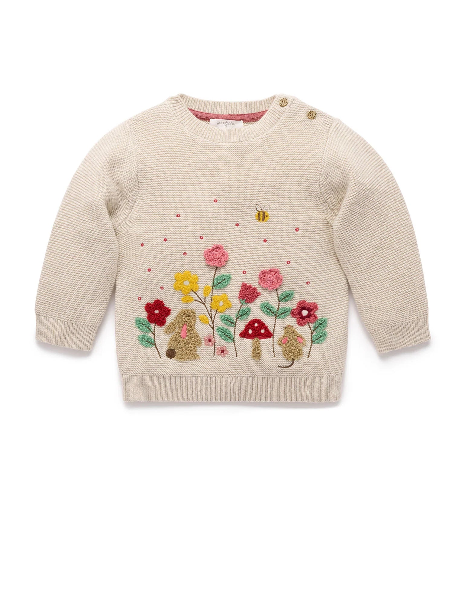 Purebaby's sweet Woodland Jumper features a fluffy applique of forest flowers and small creatures. Made from Purebaby's organic cotton wool blend, this is a cosy piece which can be paired with their Thick Pocket Leggings and Beanie for a sweet outfit.