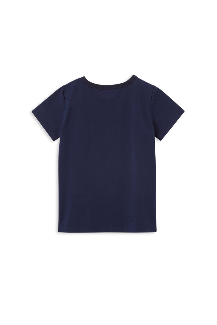 The True Navy Henley from Milky Clothing is a timeless addition to any summer wardrobe. This classic cut Henley tee is crafted from a cotton elastane blend fabric, ensuring both practicality and comfort for your little one. Featuring two functional wood-look buttons for easy dressing, it combines style with functionality effortlessly. Designed for repeat wear, this tee is built to withstand wash after wash, maintaining its quality and comfort. With its versatility and ease, it's the top every little person needs to make getting dressed in the morning a breeze.