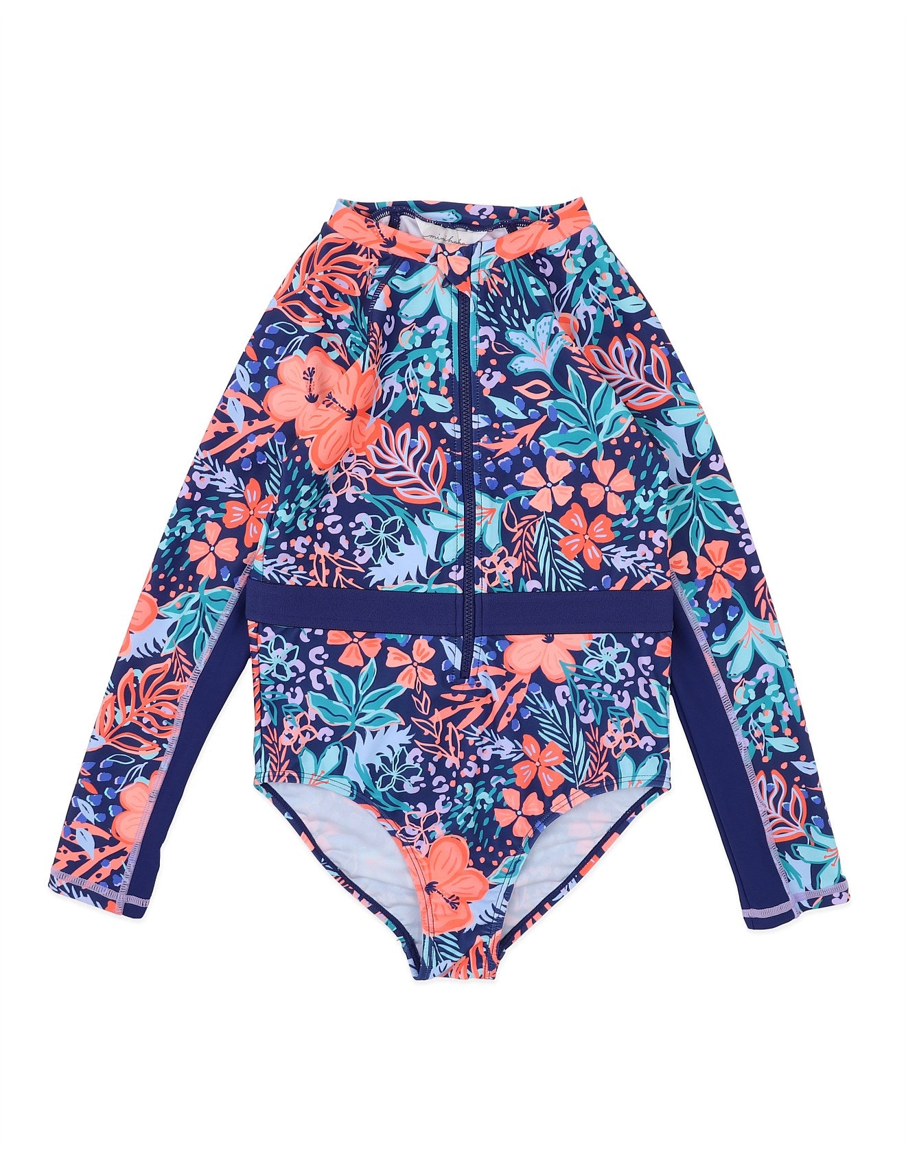 Made for adventurous days in and out of the water. The Coco Print Long Sleeve Sunsuit from Minihaha is a bold floral swimsuit brings sporty style and sun-smart coverage together in one standout piece. Featuring a high-energy tropical print in vibrant corals and blues, it’s designed with a contrast elasticated waistband, long sleeves and a centre front zip for easy changing. Fully lined through the front for comfort and confidence—ready for surf, swim or just soaking up the sunshine.